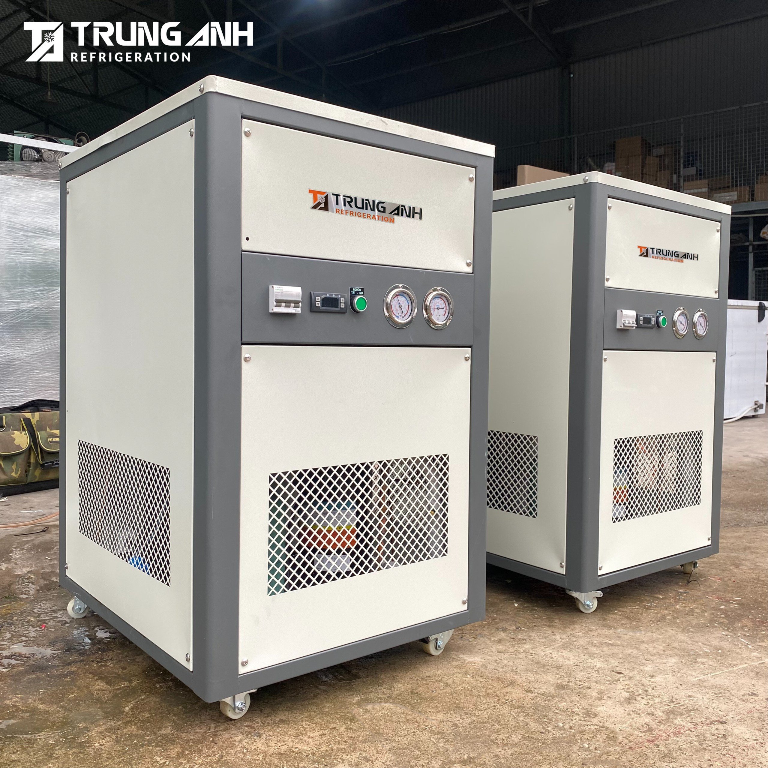 Máy làm lạnh công nghiệp cho hệ thống làm mát và bể lên men bia là thiết bị chiết rót bia tươi chuyên dụng do Công ty TNHH Thương mại & Sản xuất Trung Anh trực tiếp nghiên cứu, thiết kế và sản xuất. Sản phẩm đáp ứng nhu cầu chiết rót tức thời nhờ khả năng làm lạnh tốc độ cao. Hệ thống bơm tuần hoàn giúp bia ổn định nhiệt độ 2 – 4°C tới đầu vòi rót, đáp ứng tiêu chuẩn
