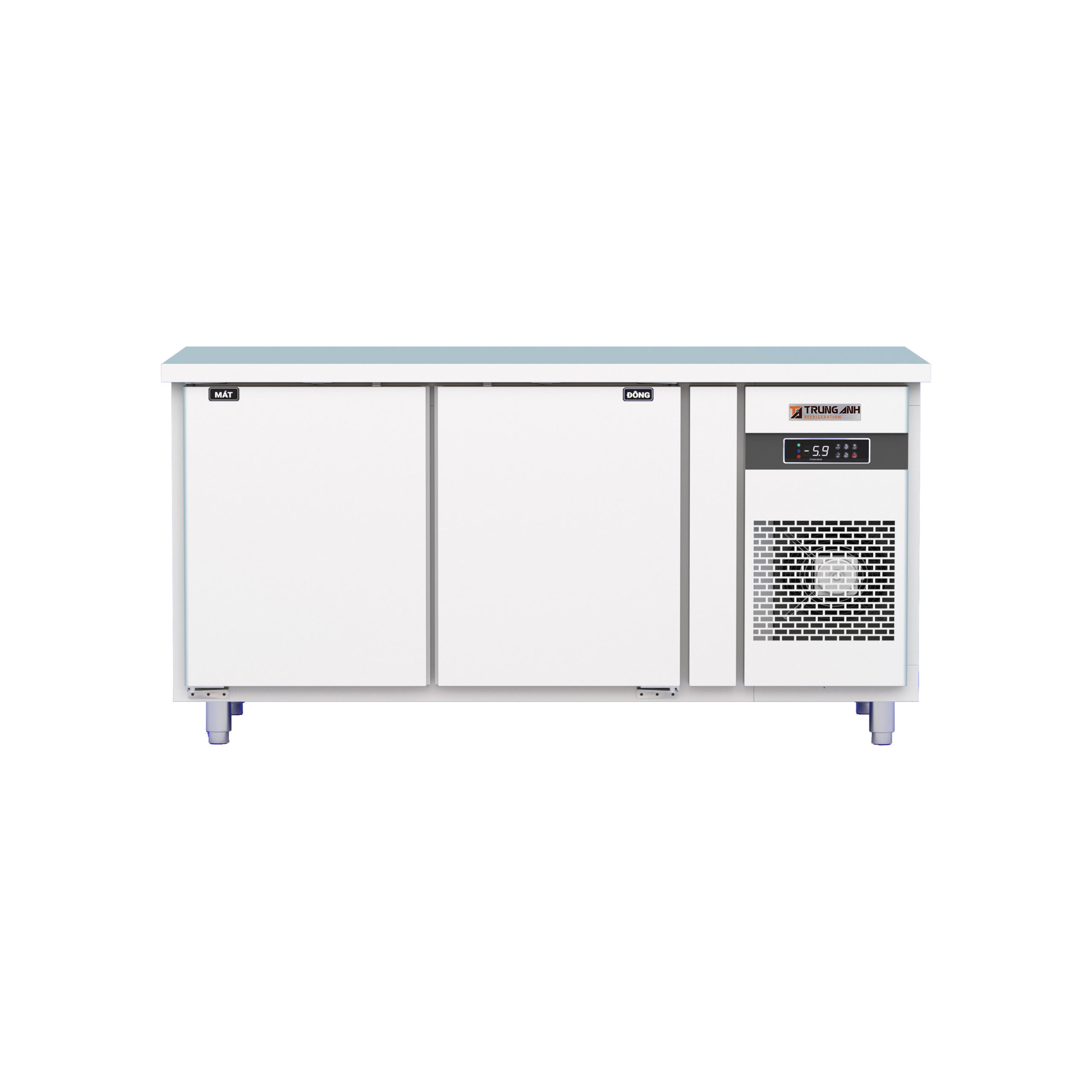 Tủ bàn Đông-Mát quạt gió 2 cánh inox 1500*600*845 là thiết bị bảo quản thực phẩm tích hợp 2 chế độ Đông và Mát. Thiết kế tủ bàn có 2 cánh mở phía trước giúp người dùng thuận tiện phân loại, cất trữ và thao tác lấy thực phẩm dễ dàng, nhanh chóng.