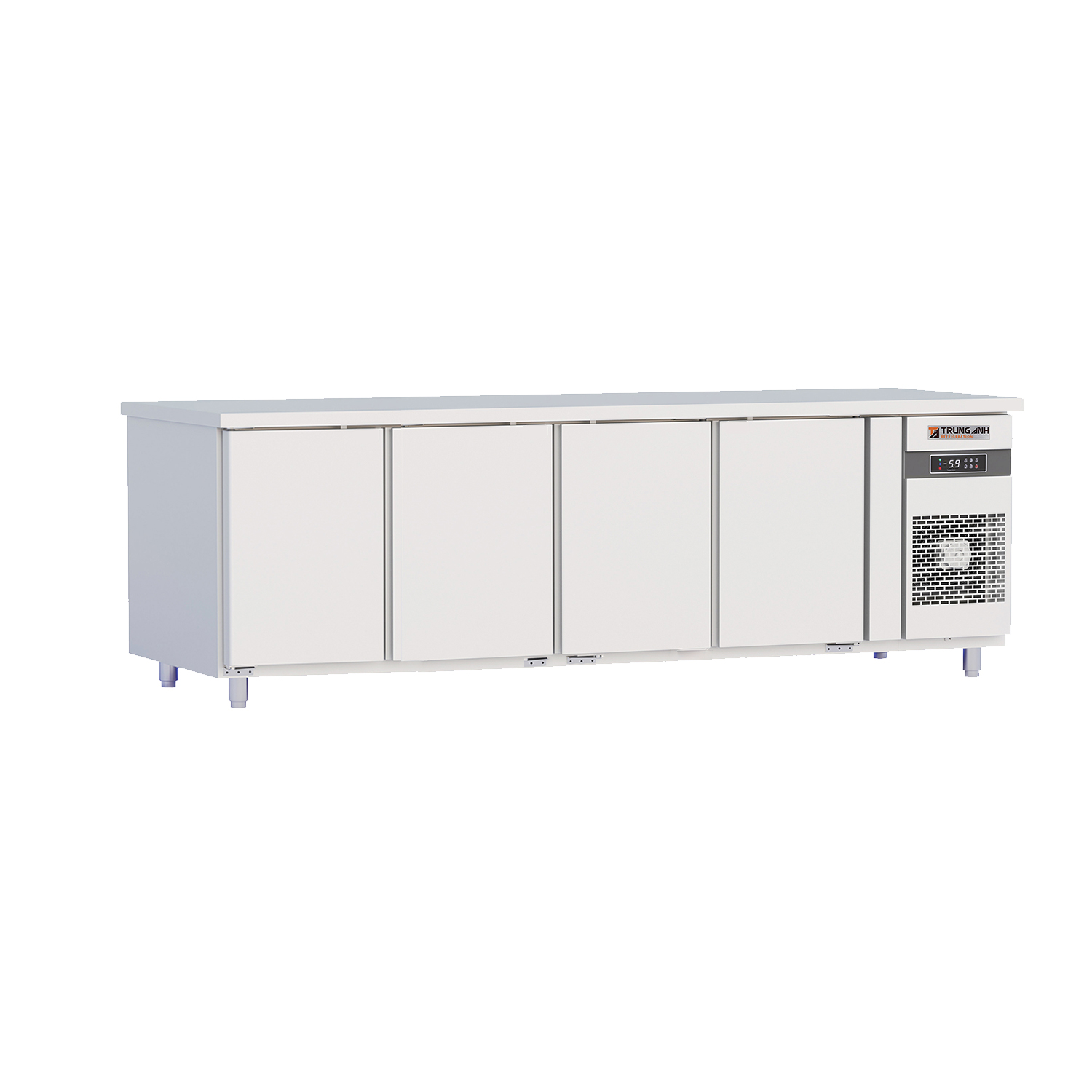 Tại các quầy bar, nhà bếp khách sạn, nhu cầu lưu trữ thực phẩm ở chế độ mát nhằm phục vụ thao tác lấy nhanh chóng trong quá trình sơ chế, nấu nướng là rất lớn. Tủ bàn mát quạt gió 4 cánh mở inox 2250x760x845 là giải pháp tối ưu với tốc độ làm mát thực phẩm nhanh, duy trì nhiệt ổn định từ 0 đến 10 độ C tại tâm tủ, giữ trọn độ tươi ngon và dưỡng chất của thực phẩm với nhiều ưu điểm: