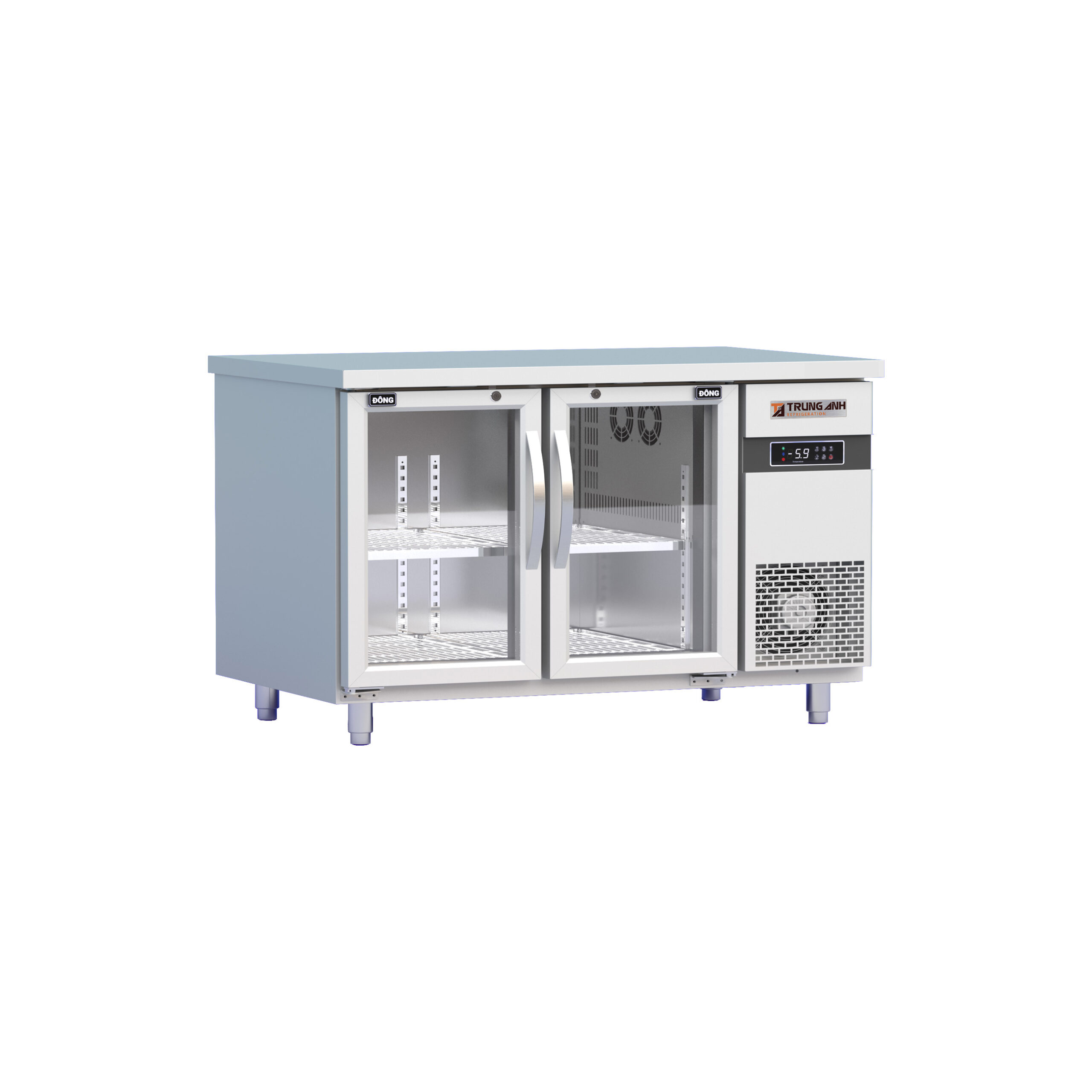 Tủ bàn đông quạt gió 2 cánh mở kính 1200x600x845mm là mẫu tủ bảo quản thực phẩm công nghiệp phục vụ vận hành ở chế độ đông, thiết kế tủ bàn với cánh mở phía trước, cho phép thao tác sơ chế ngay trên mặt bàn. Sản phẩm sở hữu hệ thống nan giá inox đa tầng thuận tiện cho việc sắp xếp, trưng bày thực phẩm, nước uống.