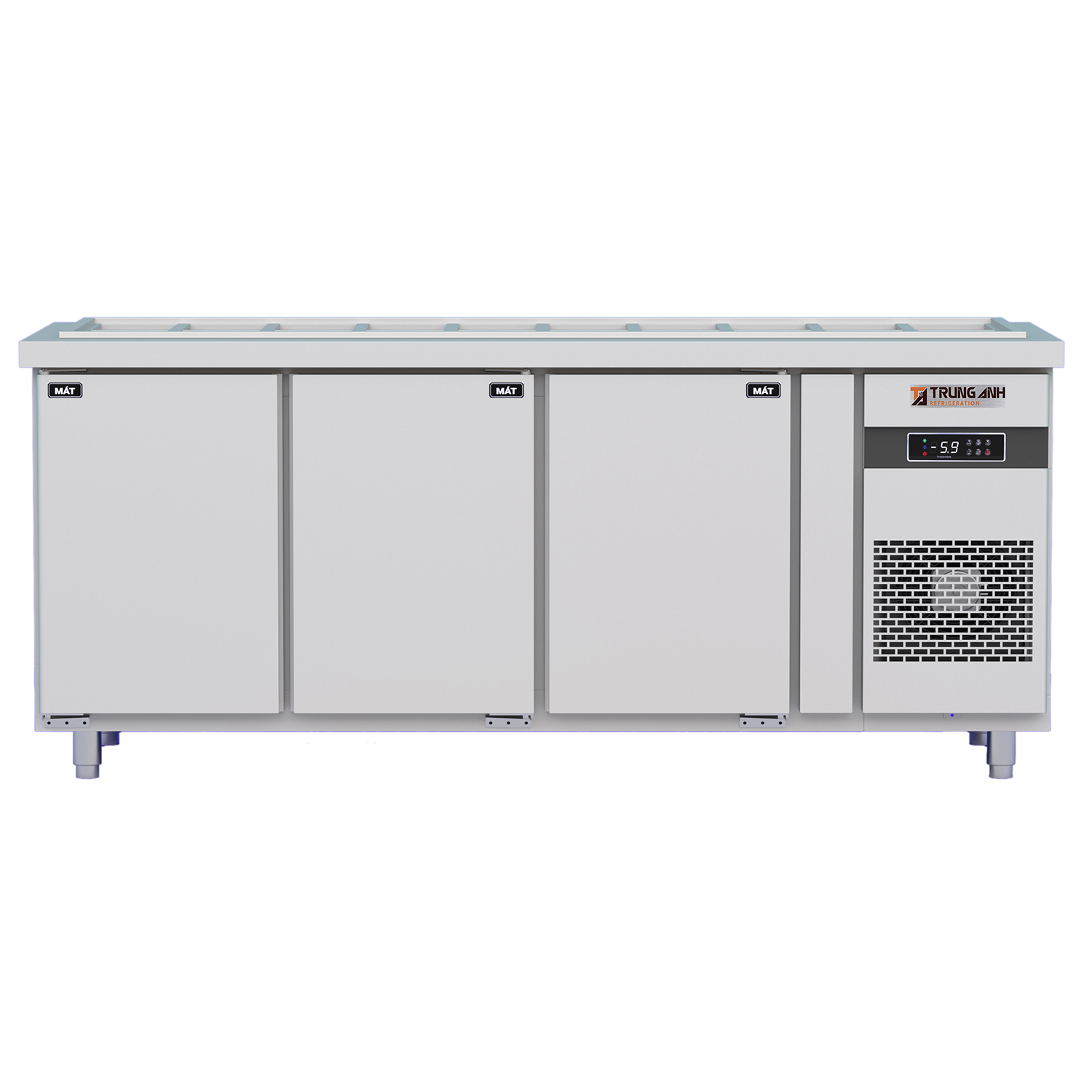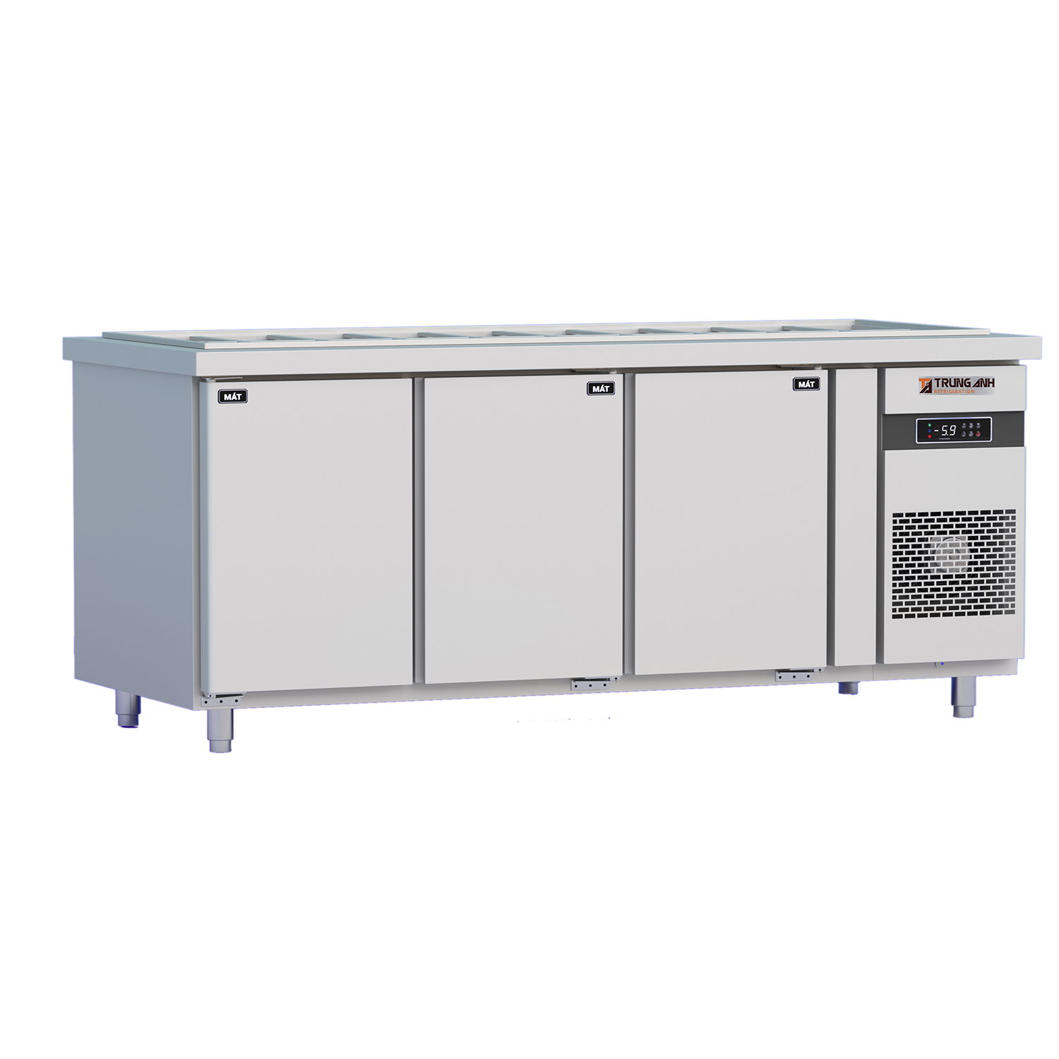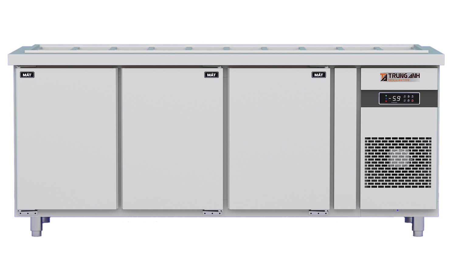 Với thiết bị bảo quản như tủ bàn salad thiết kế nhiều khay chứa thực phẩm trên bề mặt và các khoang tủ dự trữ thực phẩm bên dưới thì tốc độ làm lạnh đặc biệt quan trọng. Tủ bàn salad quạt gió 3 cánh mở inox Trung Anh được tính toán kỹ lưỡng về kỹ thuật đáp ứng nhiệt độ tiêu chuẩn cho cả khay salad lẫn khoang tủ, duy trì dải nhiệt ổn định từ 0 đến 10 độ C tại tâm tủ nhờ các yếu tố: